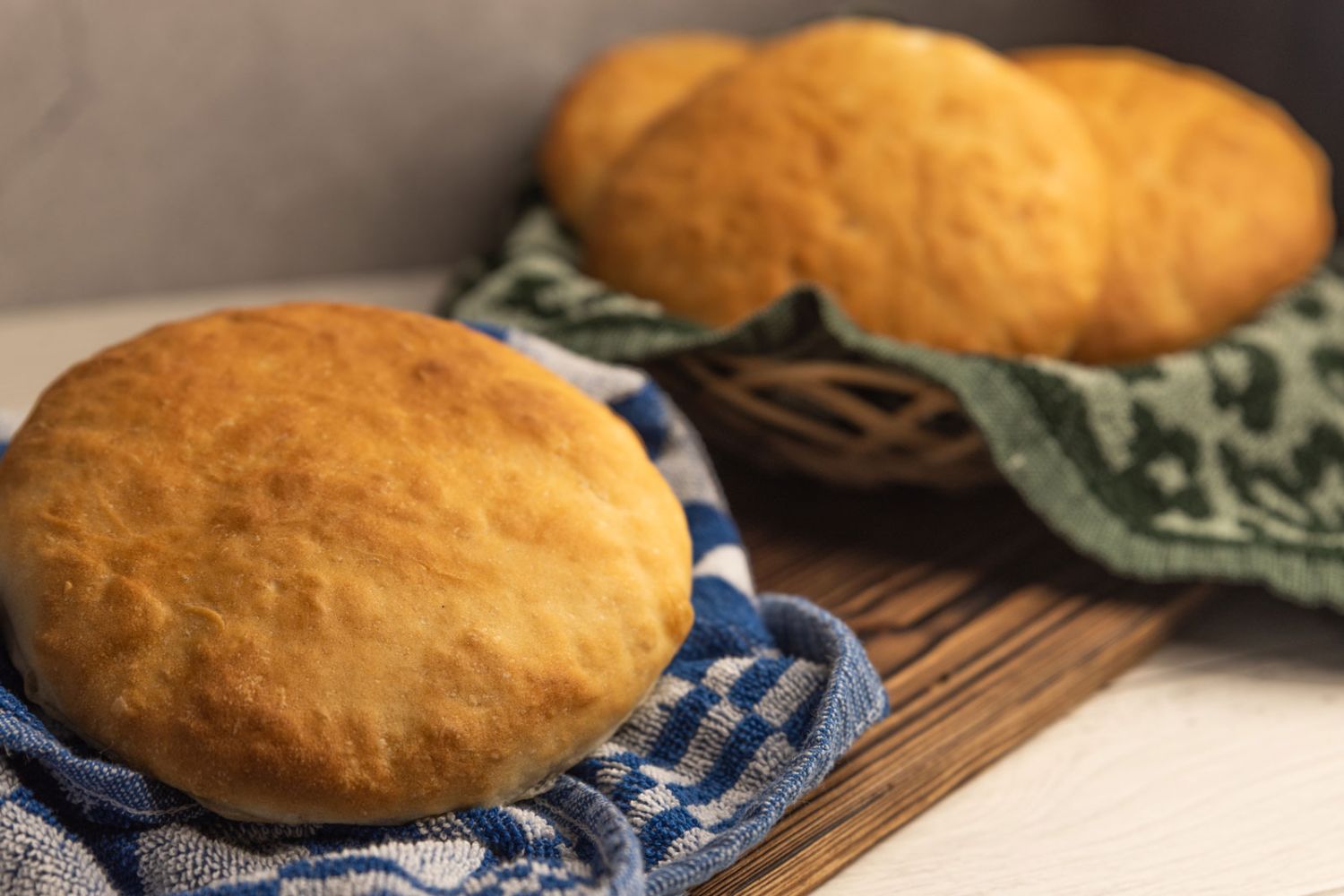 Dann gehst hin und drückst nochmals vorsichtig auf die Teigstücke, so dass sie dünner und grösser im Umfang werden.