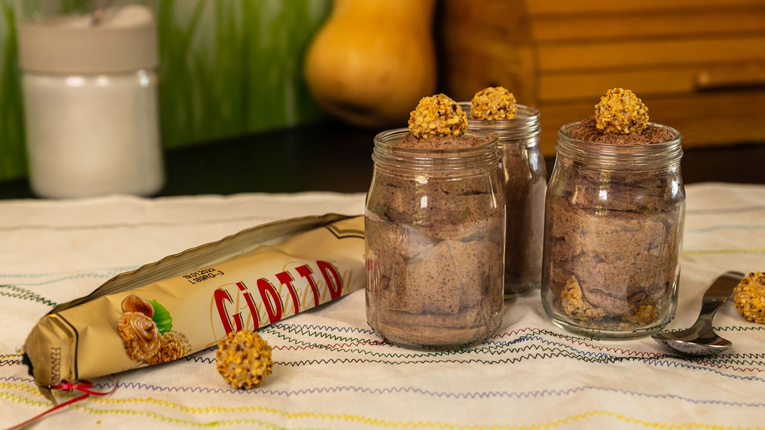 Garnieren mit einem Giotto und servieren, oder im Kühlschrank kalt stellen.