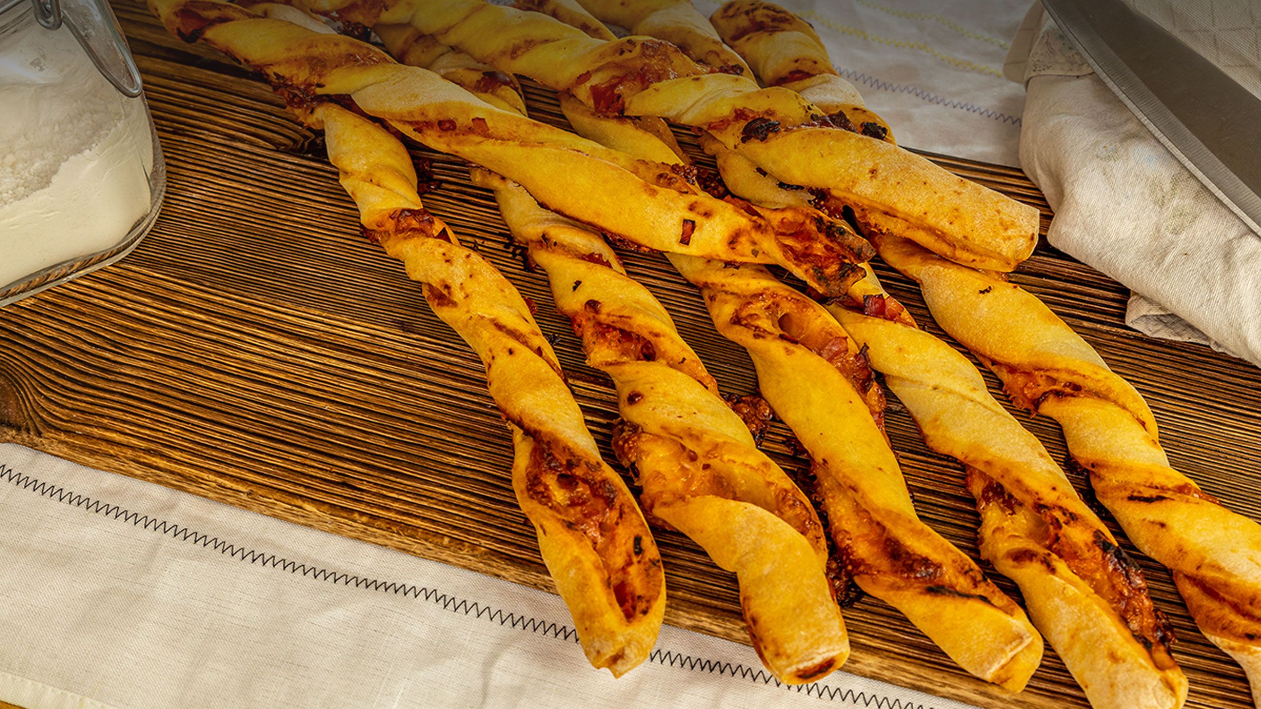 Pizzateig zu einem Rechteck, ca 3 mm dick ausrollen