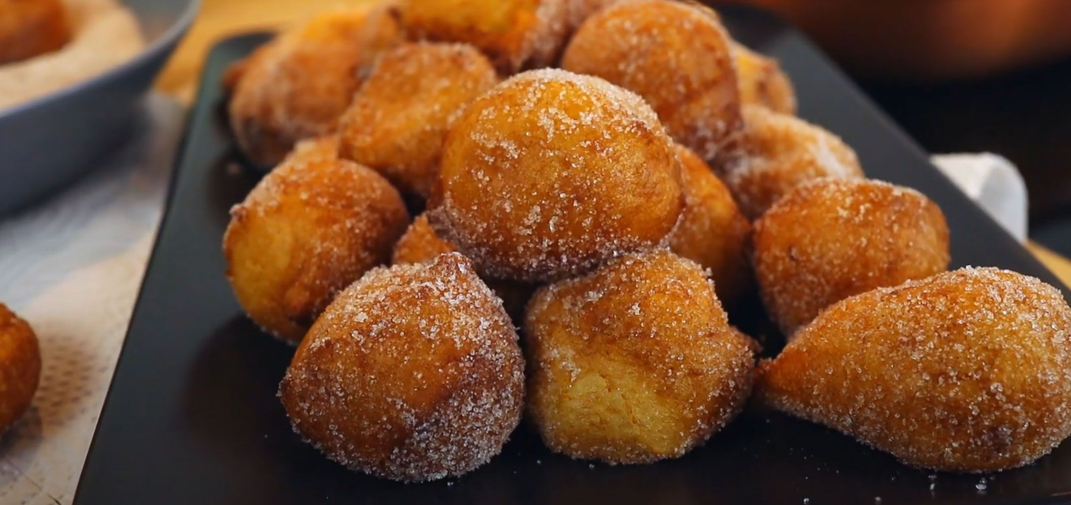 Beidseitig gut frittieren und dann im Zucker drehen. Tipp, gebe ein wenig Zimt in den Zucker