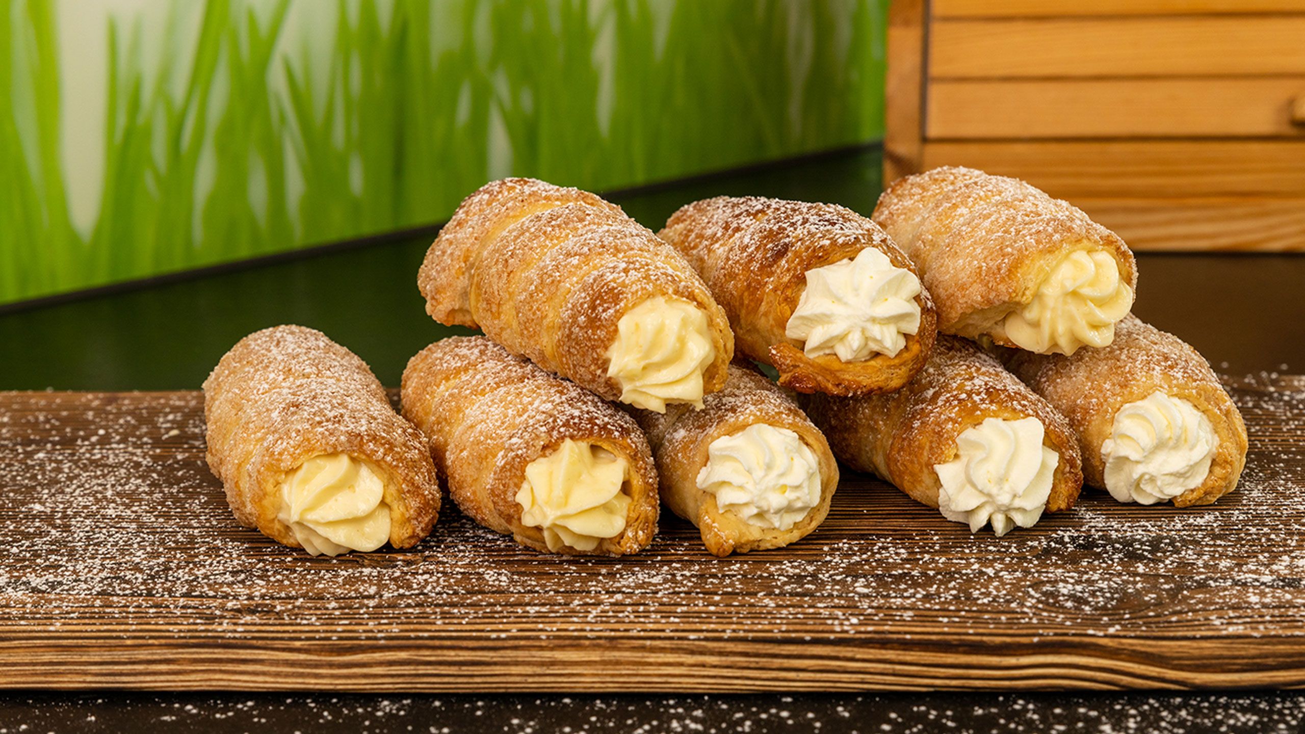 Sobald die Vanillecreme kalt ist und ein wenig angezogen hat und auch die Blätterteigrollen kalt sind, Vanillecreme aufschlagen so dass sie cremig ist und ev. noch geschlagene Sahne darunter ziehen.