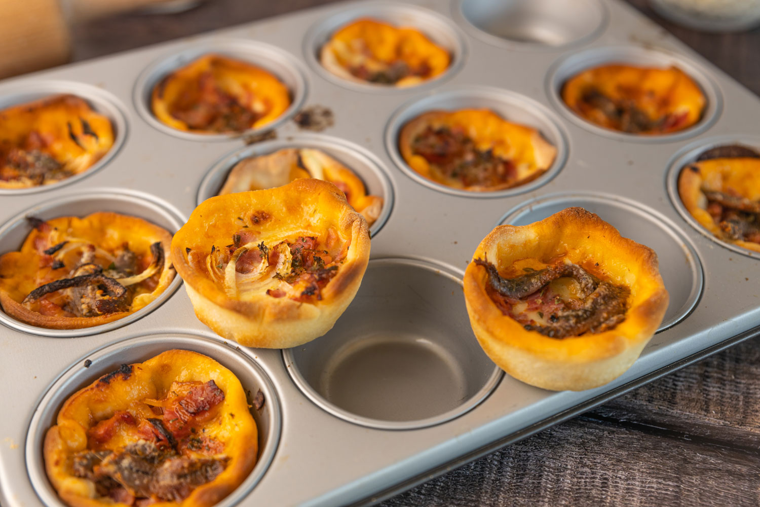 Jetzt die Muffins / Teig füllen, belegen wie eine Pizza.